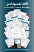 The God Speaks Still Printable Theme Bundle is designed to help women like you learn the importance of taking time to be still and focus on God, so that you can hear His desires for your life.